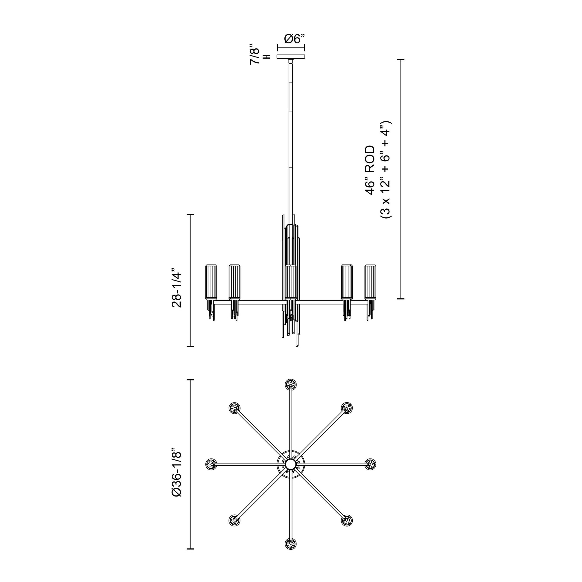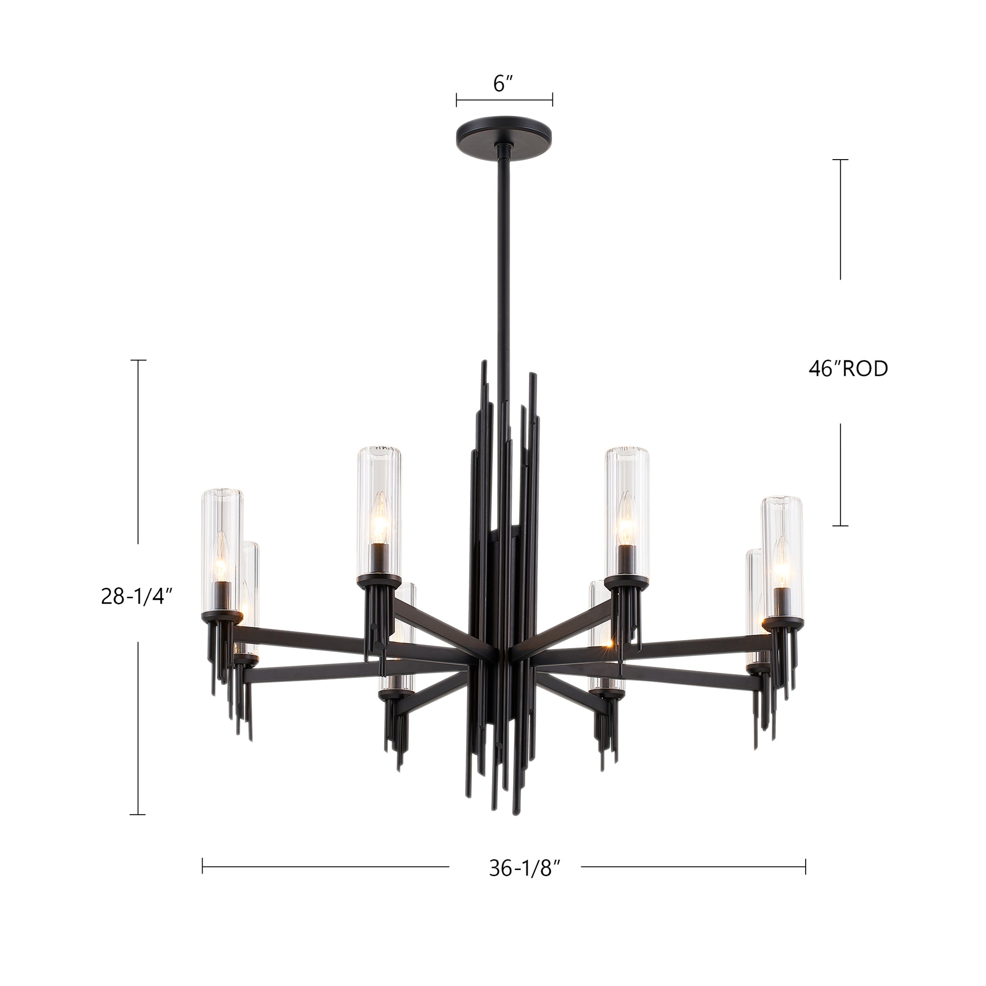 Torres 36-in Clear Ribbed Glass/Matte Black 8 Lights Chandeliers