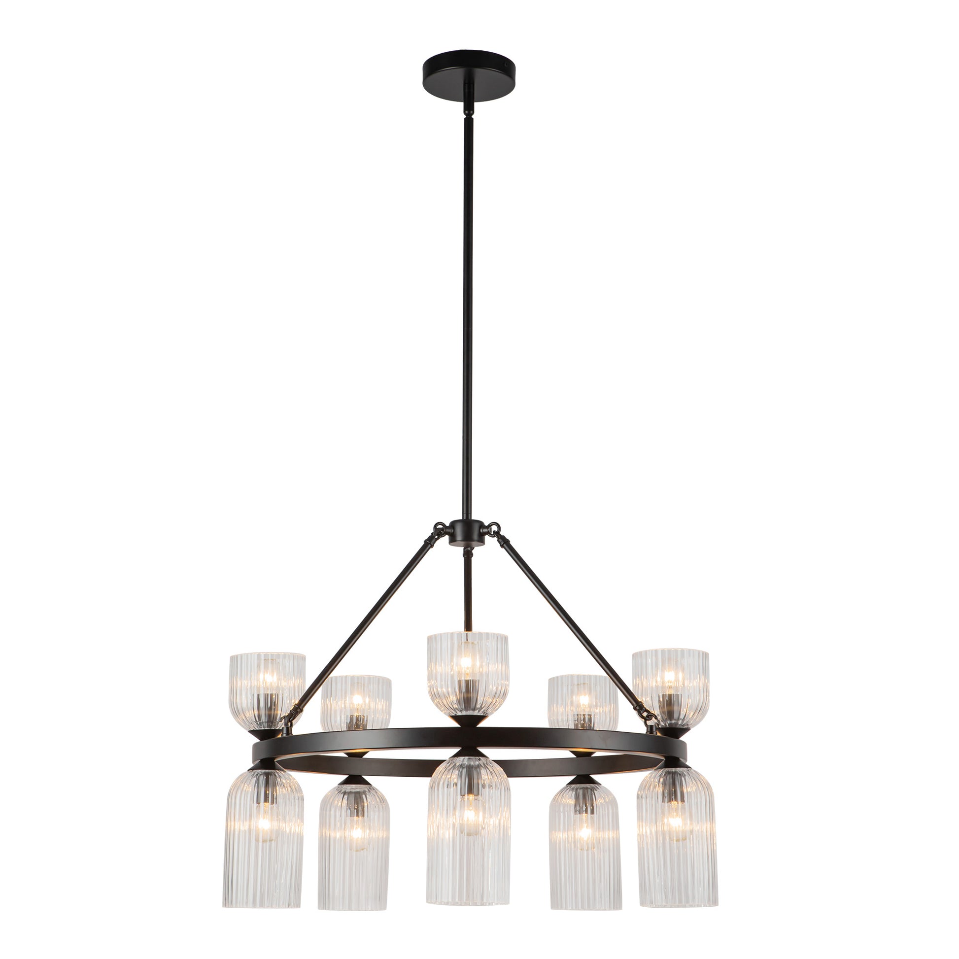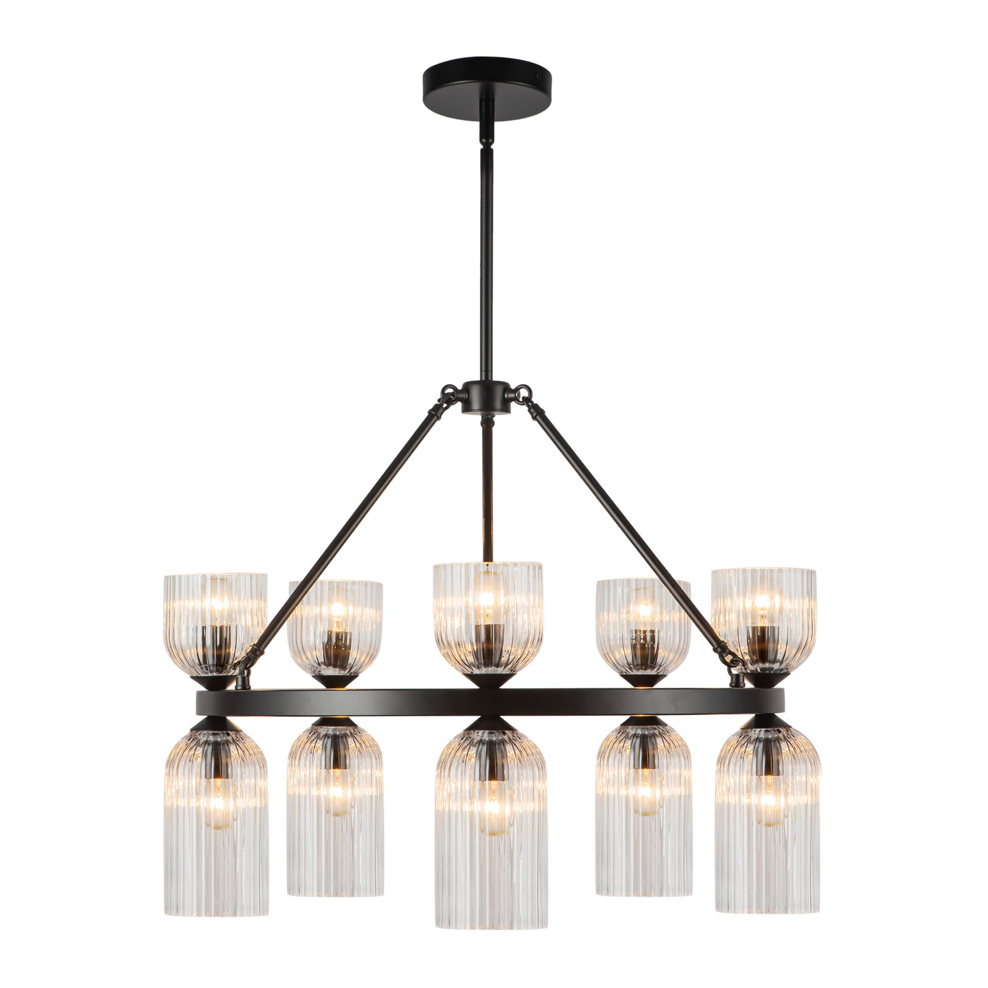 Nelly 26-in Matte Black/Clear Ribbed Glass Socket Chandelier