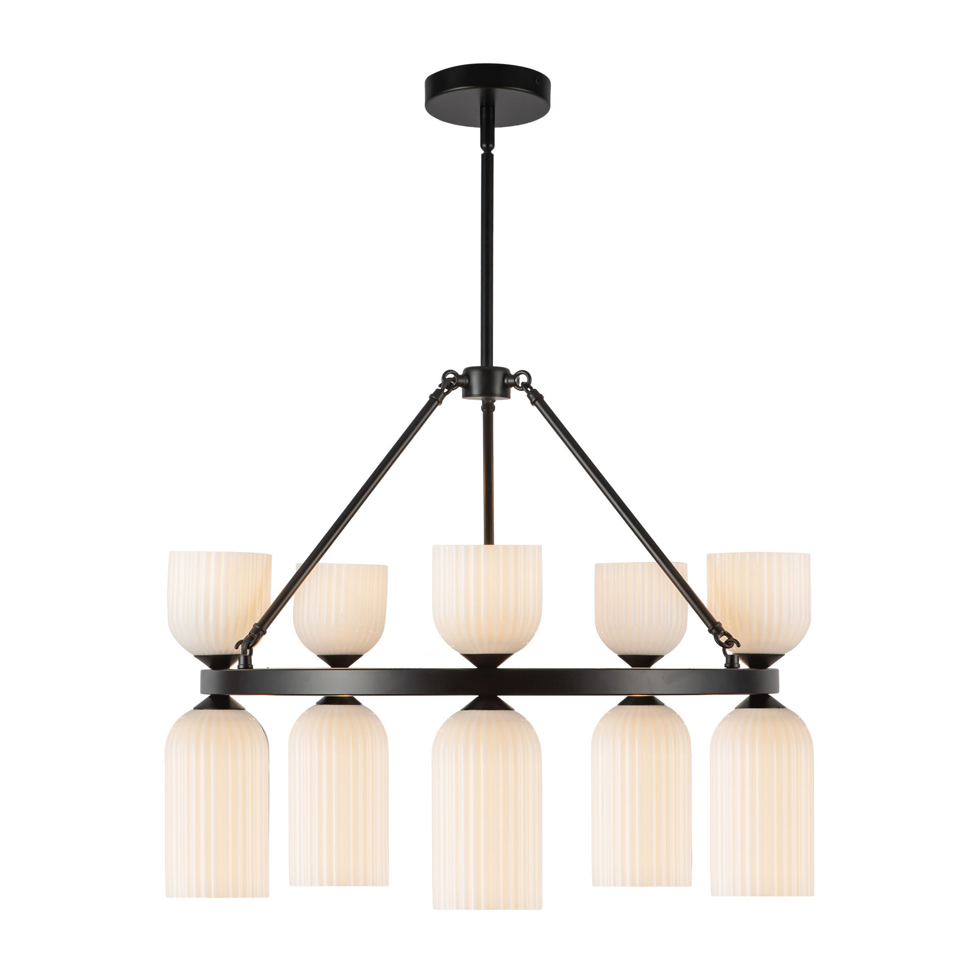 Nelly 26-in Matte Black/Glossy Ribbed Opal Glass Socket Chandelier