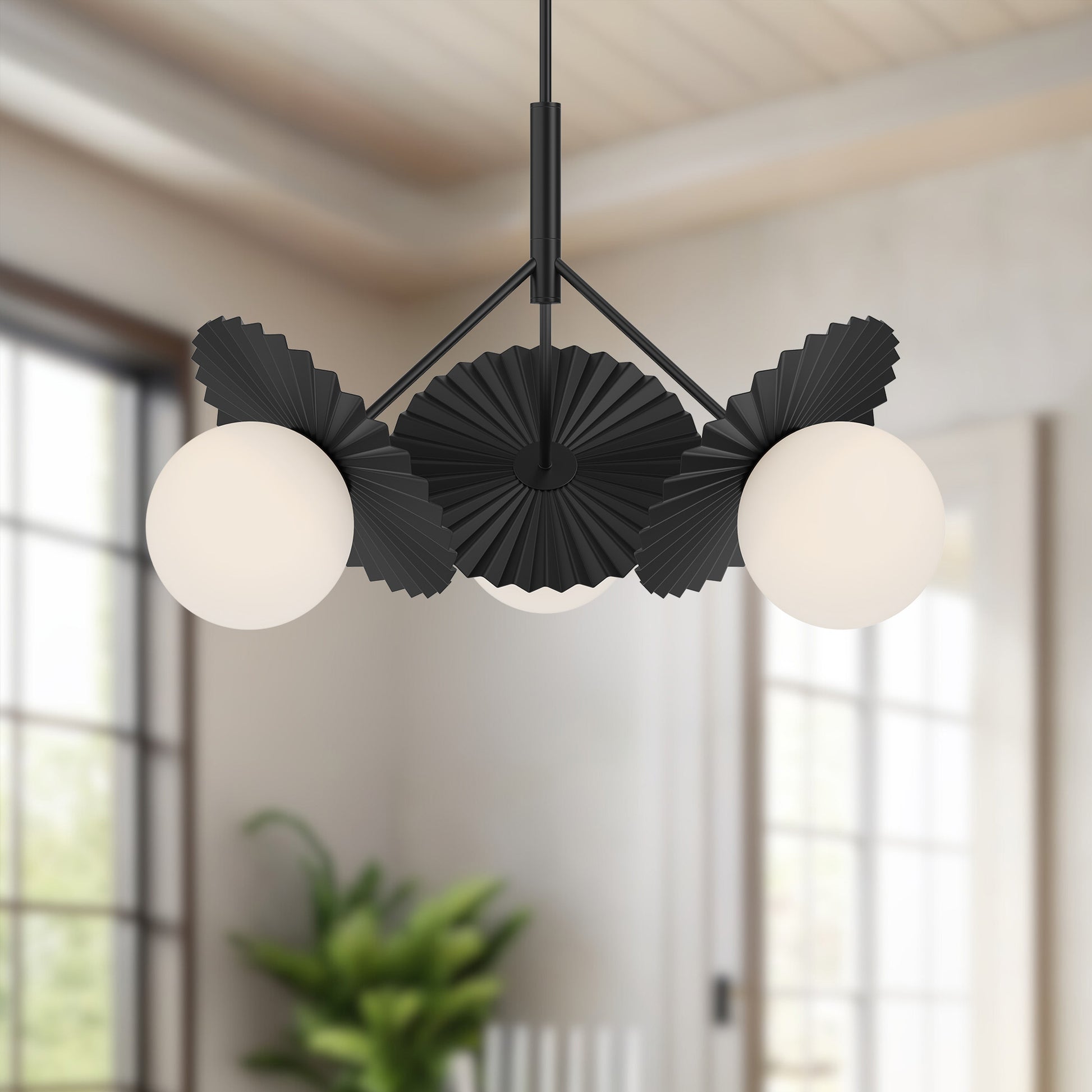 Plume 34-in Matte Black/Opal Glass 3 Lights Chandeliers