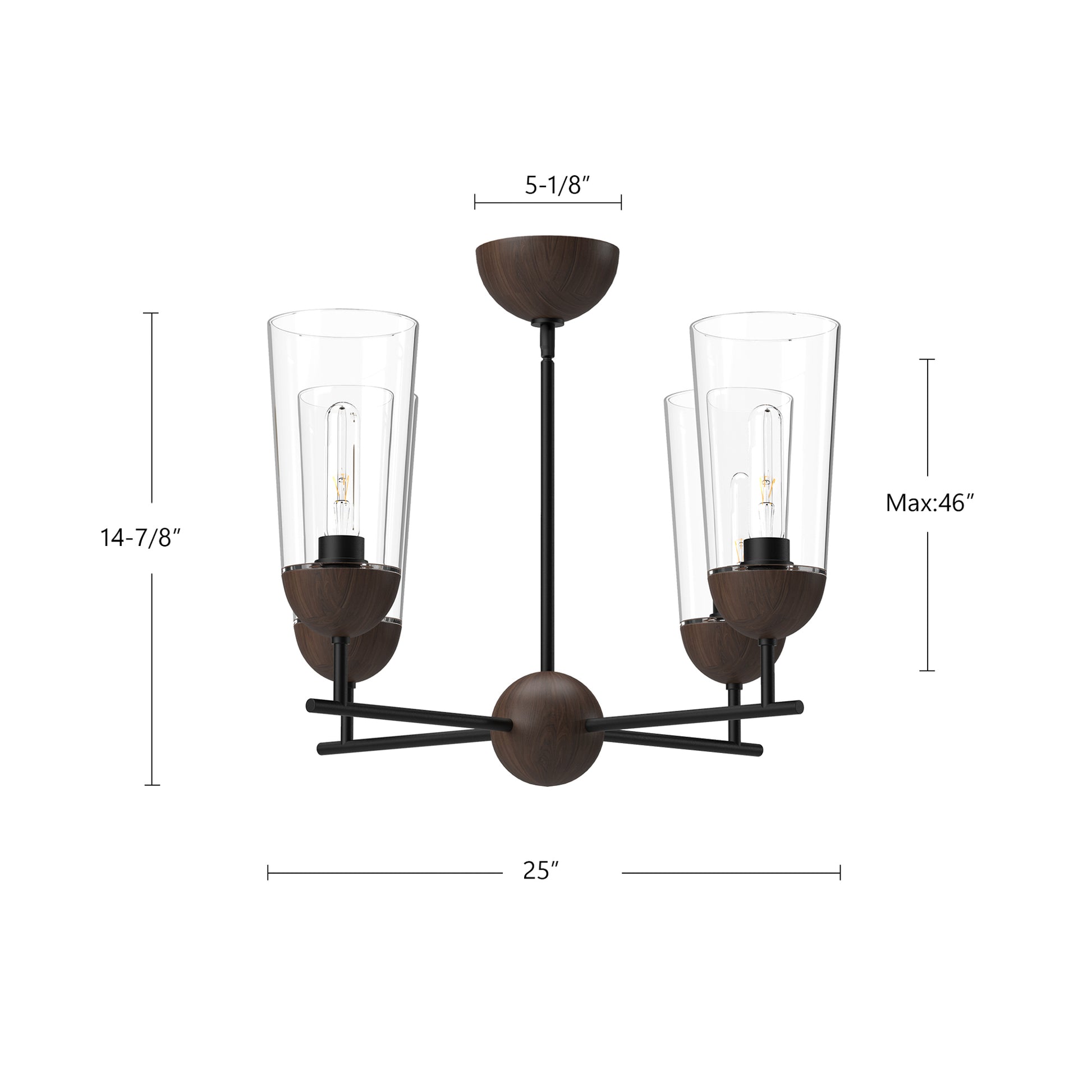 Emil 25-in Matte Black/Walnut 4 Lights Chandeliers