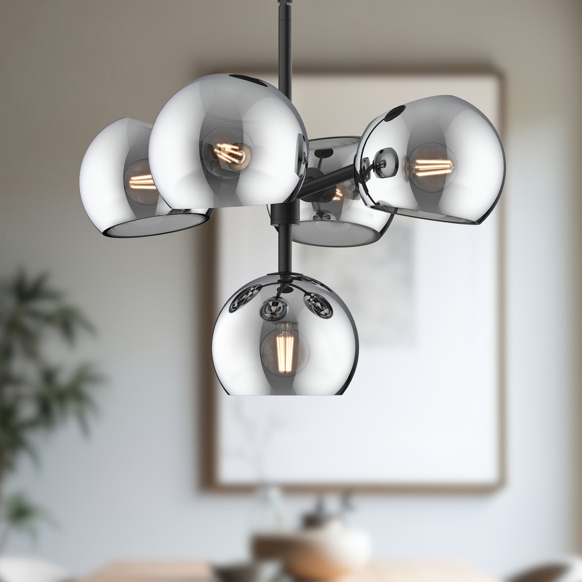 Willow 18-in Matte Black/Smoked Solid Glass 5 Lights Chandeliers