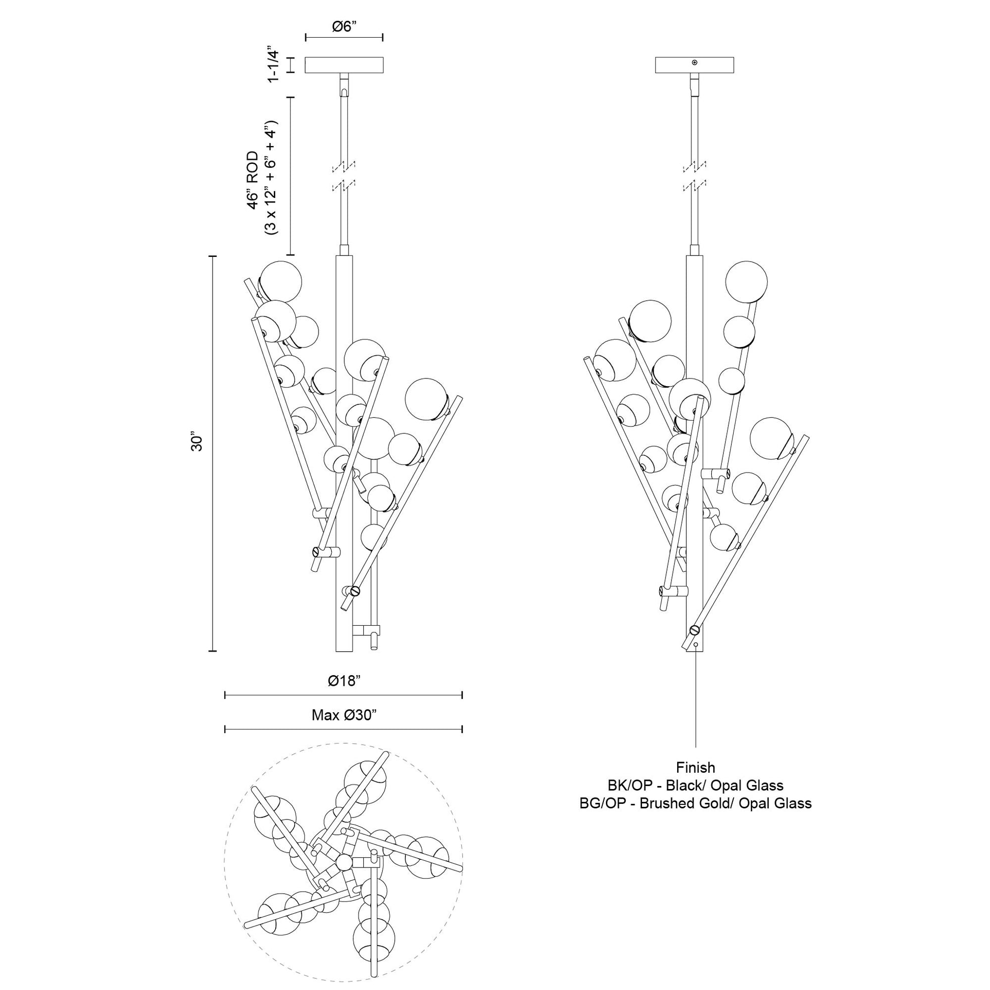 Juniper’s shape expands and contracts to suit your space’s needs. Each “branch” of the Juniper collection adjusts to lengthen or collapse, creating a customized look. Atop each arm sits three growing Matte Opal glass globes stretching outwards to create depth and emphasis.