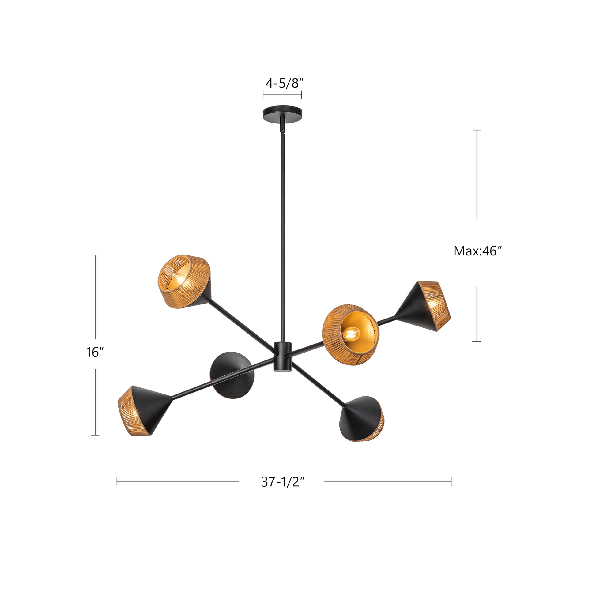 Daphne 38-in Matte Black/Brown Cotton Rope 6 Lights Chandelier
