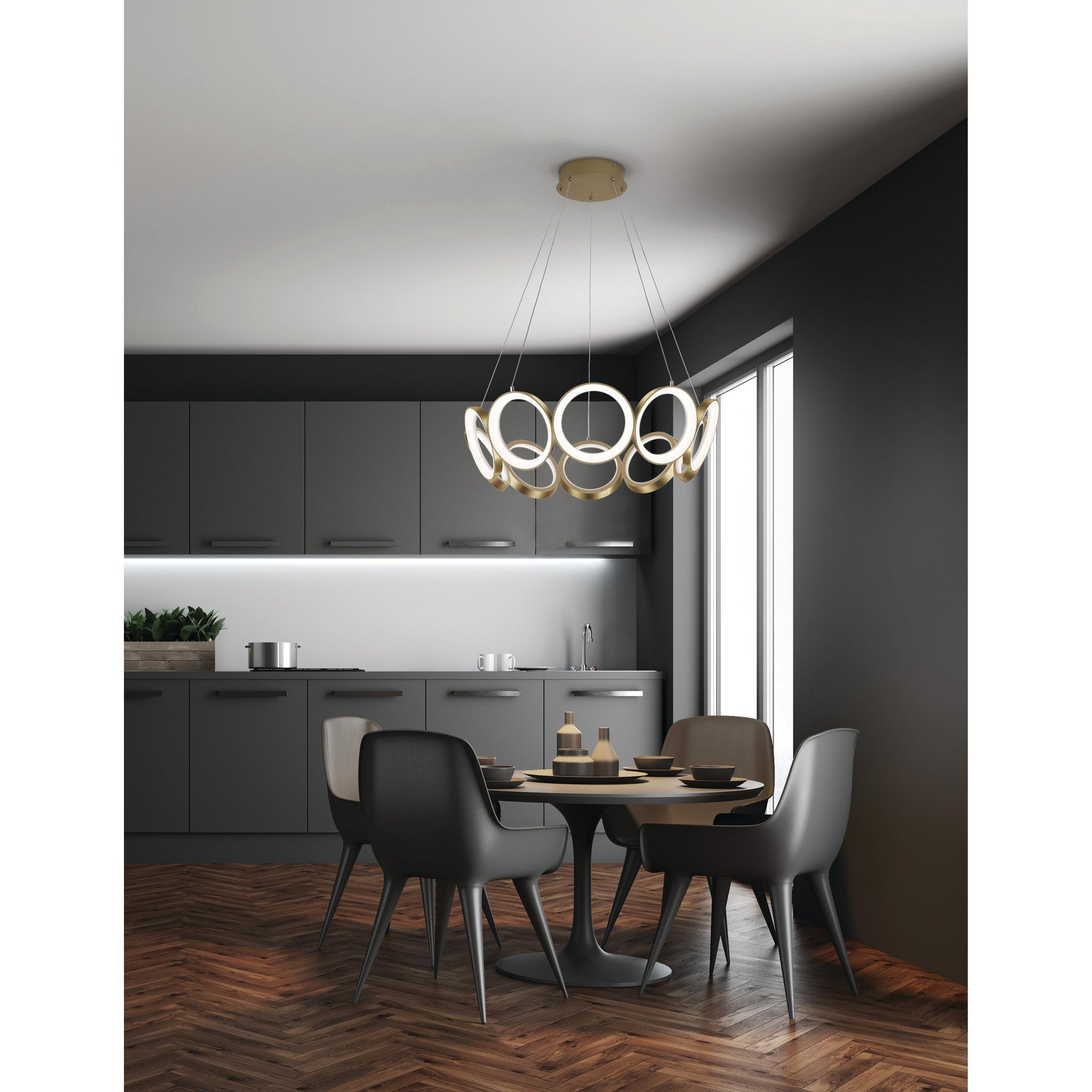 Die-cast aluminum rings with translucent acrylic diffusers. Metallic brushed or matte powder-coat finish. Outward emitting light. Custom options available.