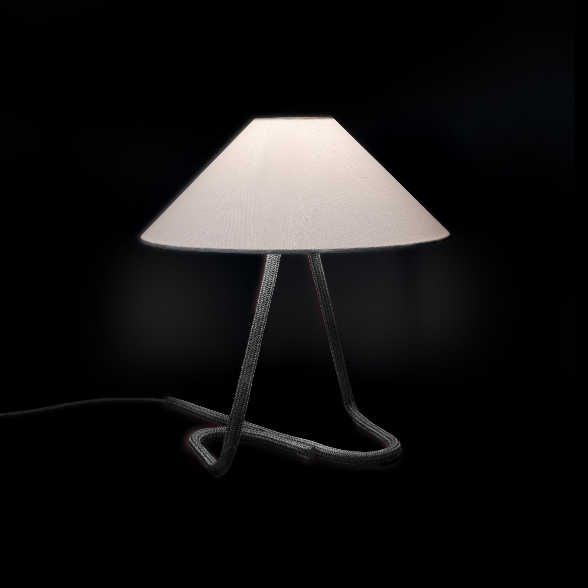 From the Hat collection. Dimensions: H 20", W 17.3", D 17.3". Lamping: 1 x 11W E26 Full light LED light bulb × Full light LED light bulb. Mounting: LED. HAT TA - FRAME COVERED WITH GRAY ROPE, WHITE LINEN SHADE "USA".