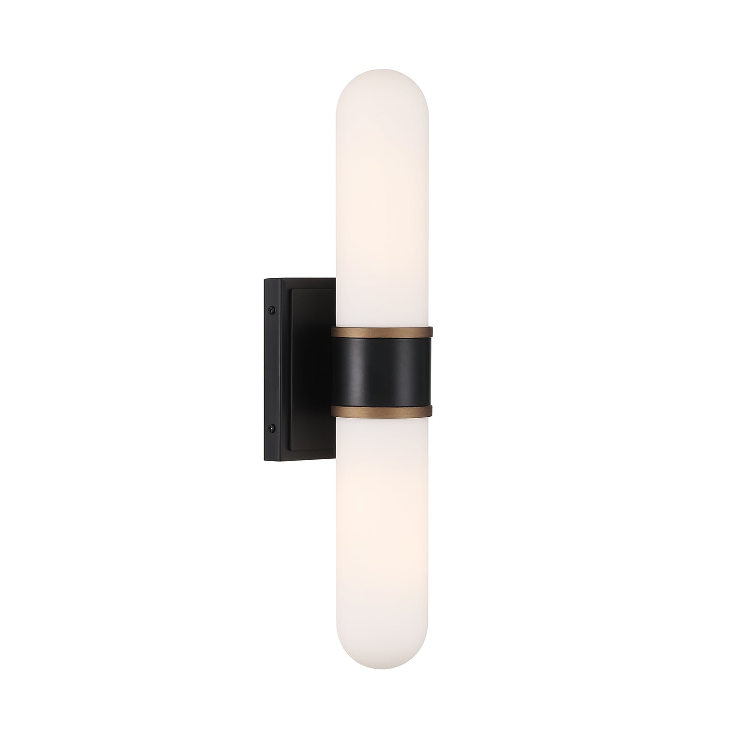 Crystorama Capsule CAP-8512-MK-TG – 18.5 Inch – 2 Light – Sconce – Matte Black + Textured Gold – Damp Rated