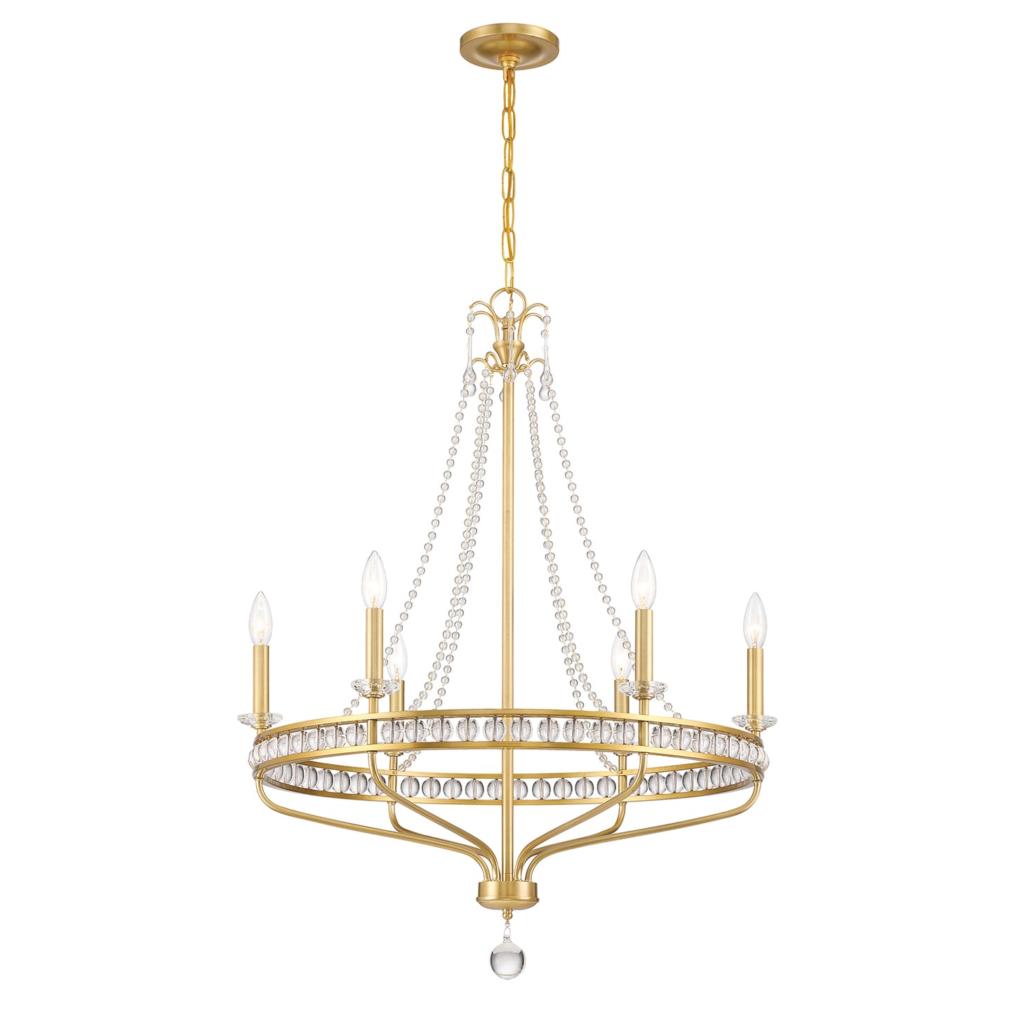 Crystorama Seville SEV-1806-AG – 28 Inch – 6 Light – Glass Beads – Chandelier – Aged Brass – Damp Rated