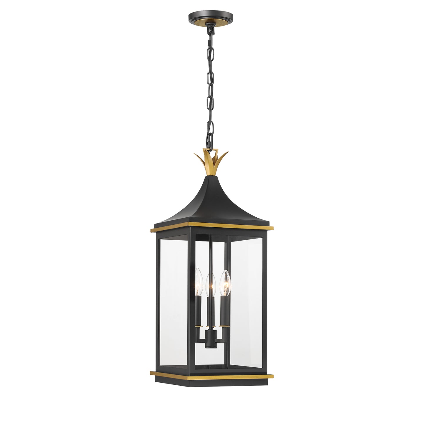 Crystorama Simpson SIM-805-MK-TG – 10 Inch – 3 Light – Outdoor – Matte Black + Textured Gold – Wet Rated