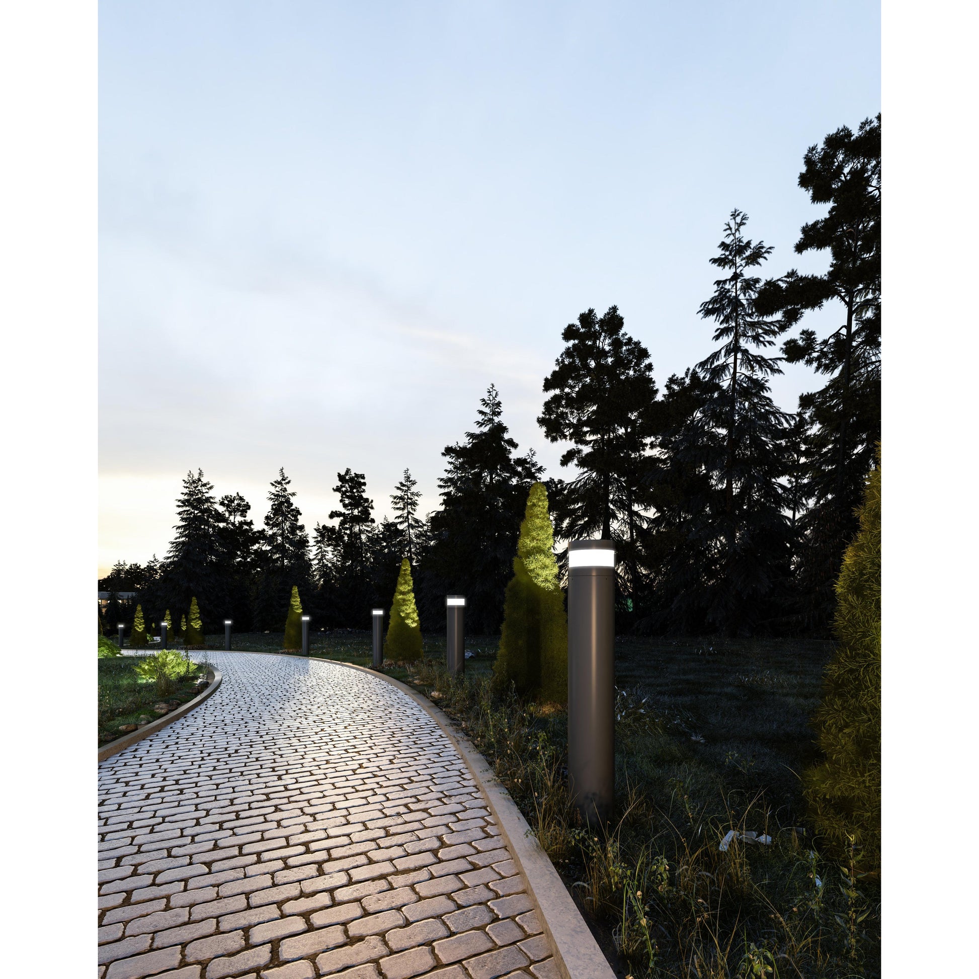 Architecturally designed high-power LED exterior bollard fixture. This die-cast aluminum cylinder with a frosted polycarbonate diffuser delivers diffused omni directional light with a sleek powder-coated finish