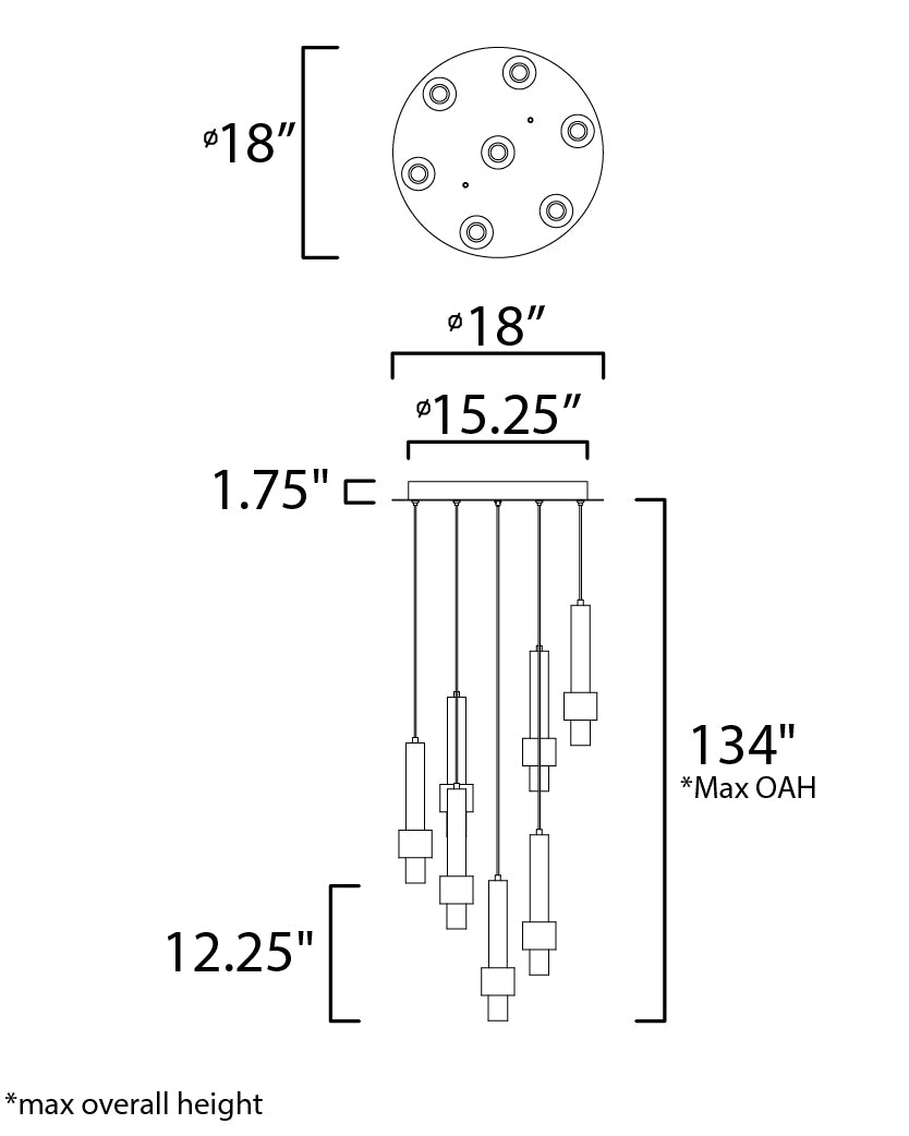 Tubular pendants finished in Matte Black in contrasting Gold bands respectively. Light shines downward from the bottom of the pendant as well as a reveal of light behind the band.