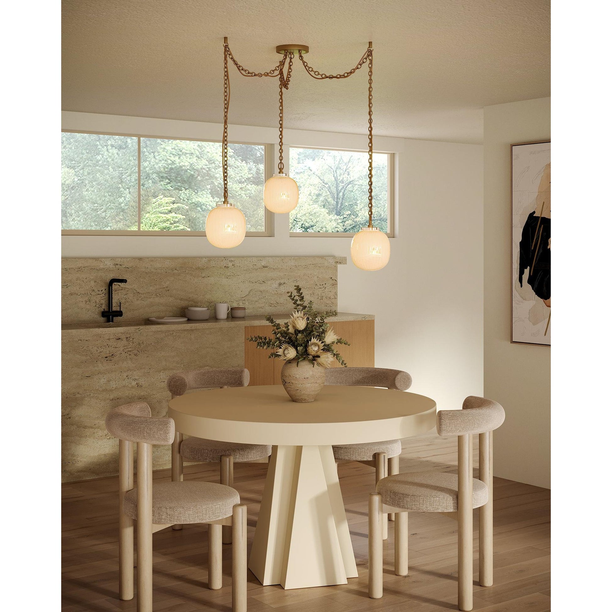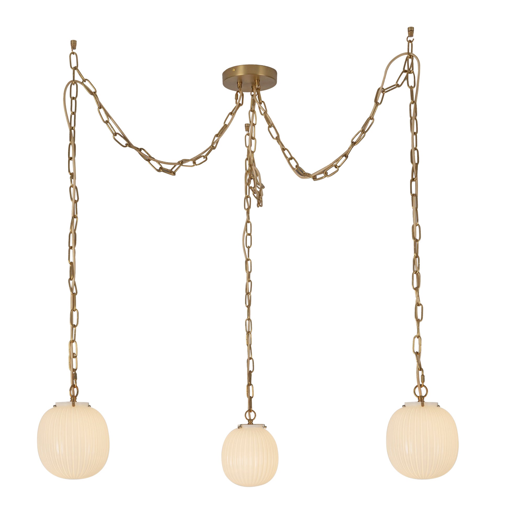 Cherise 3-Light Brushed Gold/Glossy Ribbed Opal Glass Socket Multi Pendant