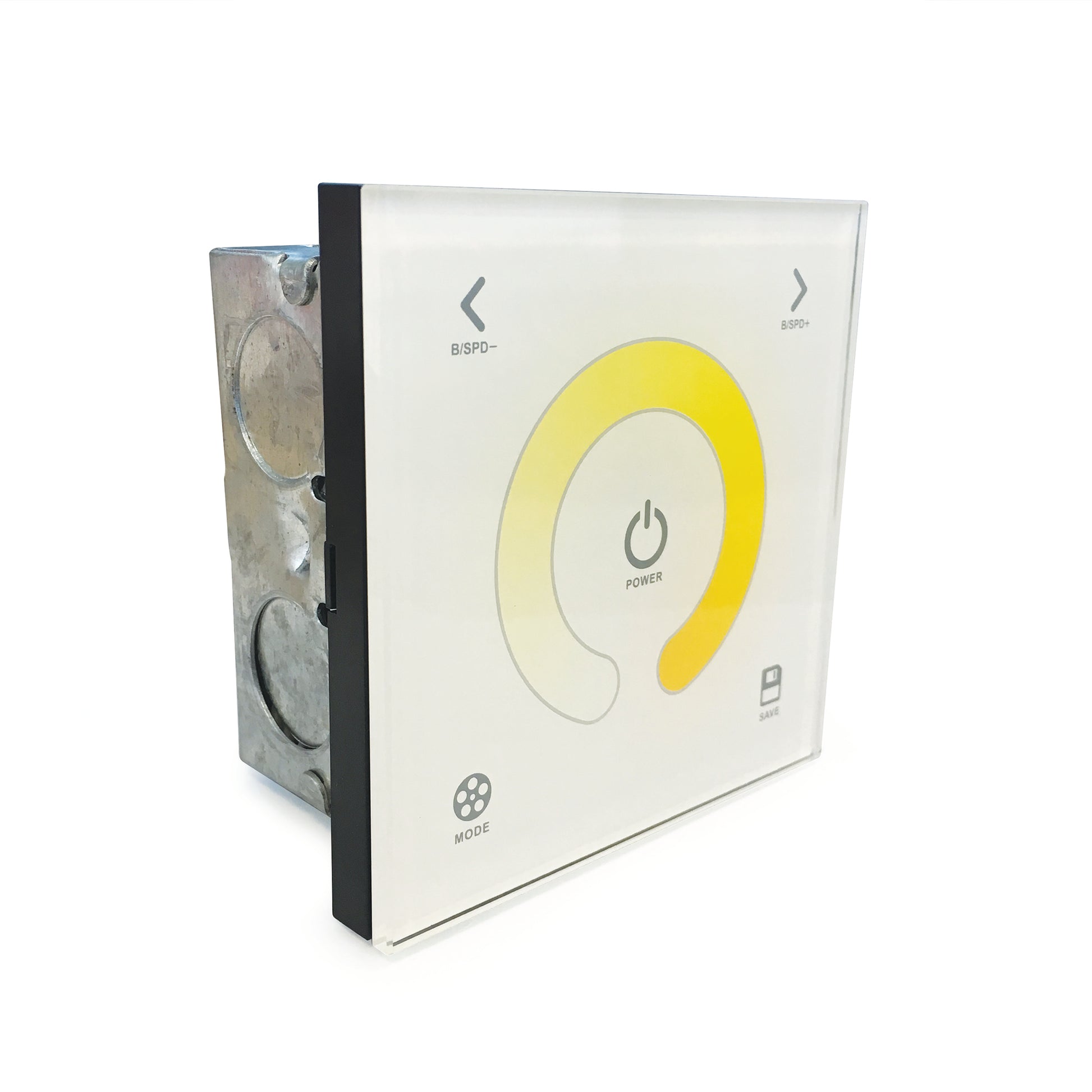CCT Touch pad wall controller for 24V CCT color tuning LED Tape Light Includes: Mounting back box. Requires: 24V LED driver Functions: Local control of CCT, on/off with memory and dimming.Couldn't load pickup availability