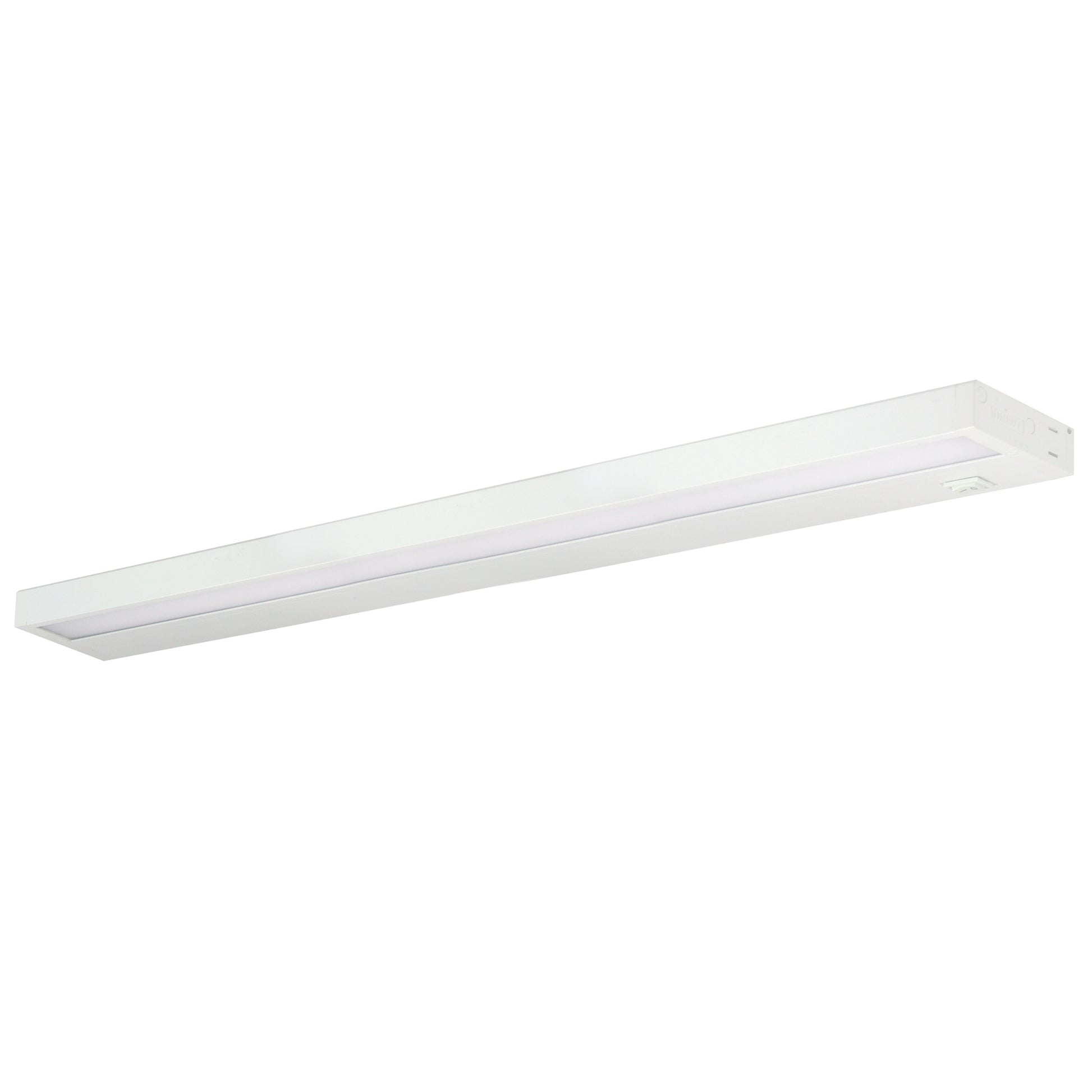 120V LED under cabinet luminaires include edge-lit diodes to give a uniform reflectance when used under cabinet over granite, polished stone or any reflective surface. Additionally it is excellent in retail display lighting where diode image might distract from display merchandise. Length: 42 inch Input Voltage: 120V Lumens / Wattage: 360lm per ft. / 12W Color Temperature: 3000K Color Rendering Index: 90+ CRI Dimming: Triac or ELV Finish: White Maximum Run Length: 400W Included: Mounting Hardware, End-to-End Connector (NUA-803), and die-cast cable clampCouldn't load pickup availability
