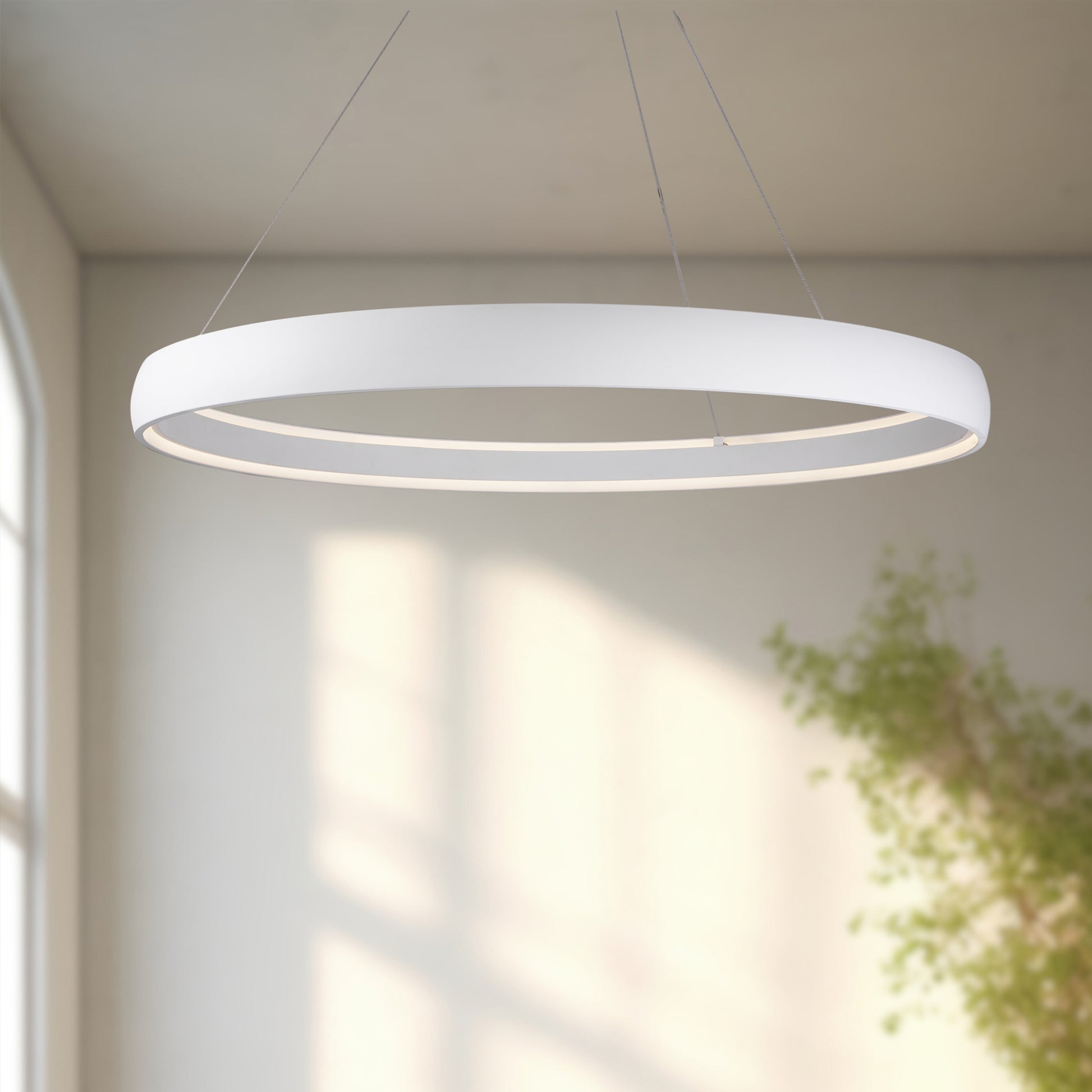 The circular Halo light makes a sleek and bold statement. This fixture illuminates your room in a smooth circular pattern, which is both modern and minimal. Available in four sizes and three finishes: Black, White and Brushed Nickel. They can be arranged in a tier formation to complement your space.