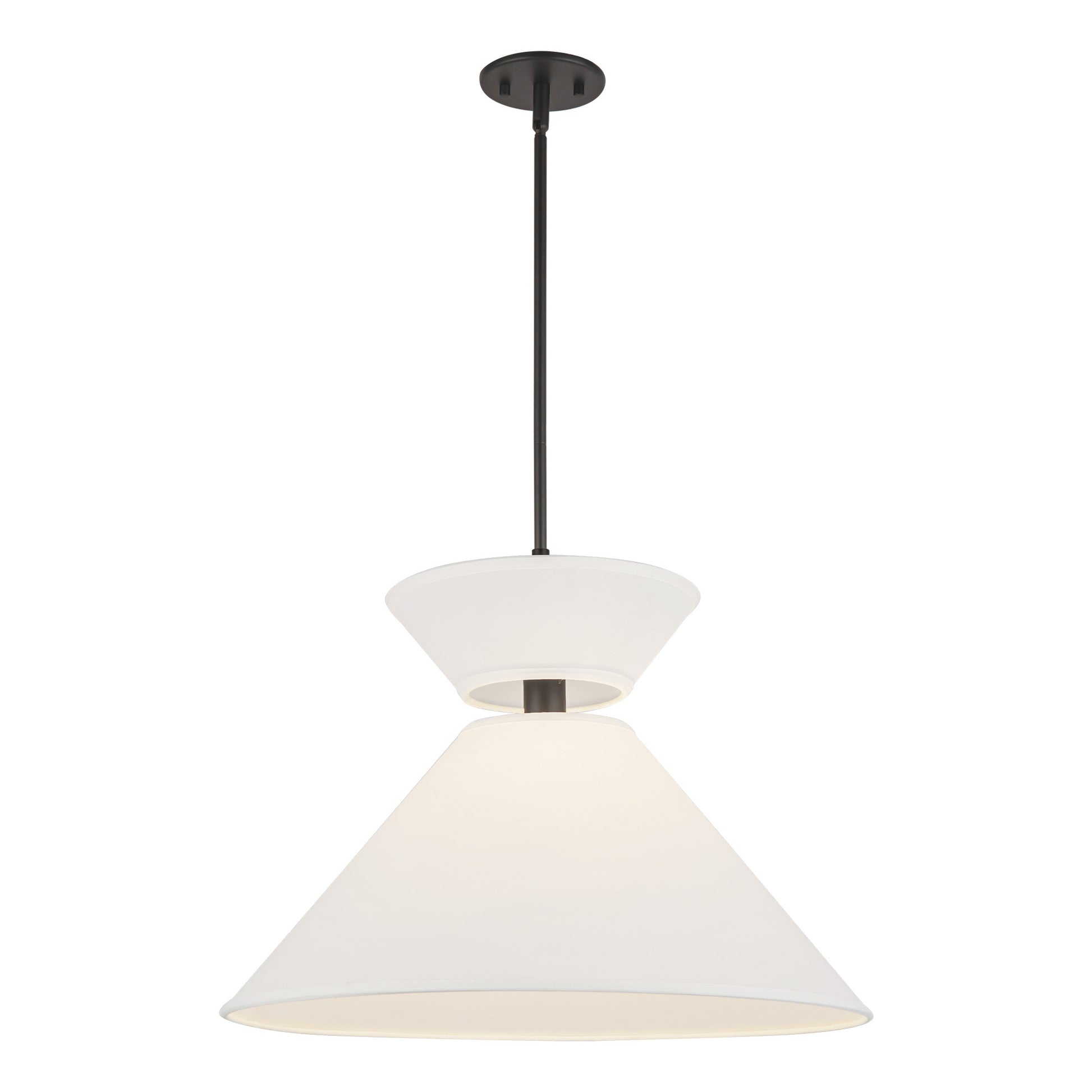 Chapelle 22-in Matte Black/White Linen 1 Light Pendant