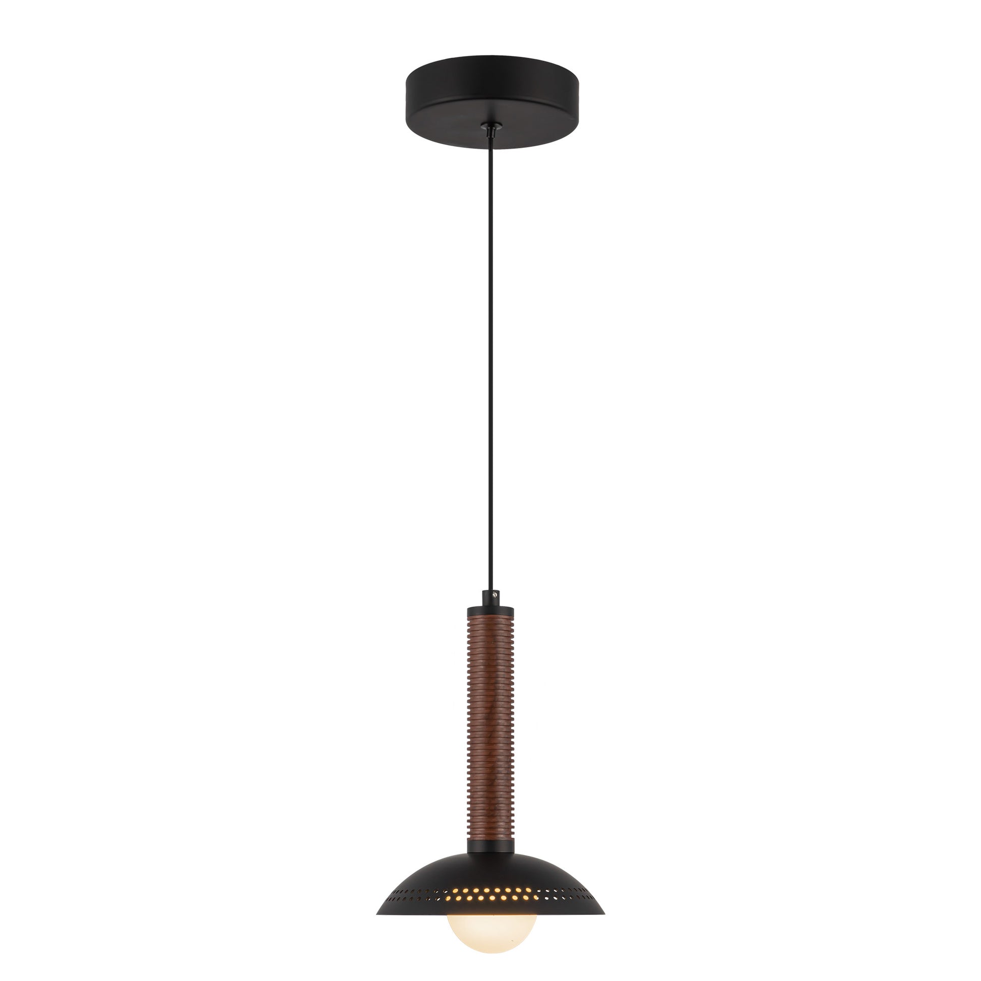 Add distinctive character to your space with the Arden lighting collection. Featuring ribbed details for added texture, Arden offers versatility with a decorative half shade or exposed opal glass globe for a minimalist mood. The black finish, accented by walnut wood veneer, brings a rustic or industrial charm to the design.