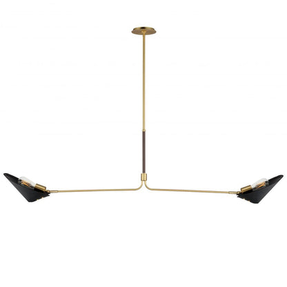 Studio M CAVALIER SM81802NAB Pendant Traditional - Natural Aged Brass. Leather Swathes Are Stitched At Their Edges And Brought Together Bound By Brass Finials To Form Shades Above Brass Sockets Elongated Extensions Of Naturally Aged Brass Tubing Are Enhanced By Smooth Tobacco Brown Leather Accents Saddle Stitched And Wrapped Over The Frame The Subtle Contrast Between The Brass Bronze And Pebbled Black Leather Shades Results In A Stately Composition That Is Warm Enough For More Traditional Settings Whereas The Asymmetry Of The Constructed Form Adds Visual Interest In Their Modern Configuration The Pebbled Black Leather Shades Function To Obstruct Led Filament Lamping To Reduce The Glare From The Industrial Lamps While Directing The Light Where Needed An Added Feature Allows You To Rotate The Shades And Adjust Their Position For More Flexibility In The Design Exercising His Talent For Understated Elegance Mat Sanders Designed A Statement Piece That Is Unassuming And Luxuriant Studio M MPN: SM81802NAB