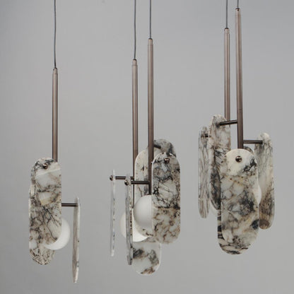 Studio M MEGALITH - STONE SM24815ARYBBZ Pendant Traditional - Brushed Bronze. A Monument To The Beauty Of Stone The Megalith Collection Is Constructed Using A Robust Iron Stem That Branches Off To Support Various Stone Panels Back Lit By Globes Of White Cased Glass Choose From Stone Panels Sets Including Spanish Alabaster A Pleasantly Pink Rose Jade White Onyx Or A Breathtaking Striae Arya With Dramatic Veining And Dark Grey Color Tone The Enduring Appeal Of The Stone 39 S Character Boosts The Luxurious Nature Of This Design The Framework Is Available In Gunmetal Natural Aged Brass Or Brushed Bronze And Made To Order Configurations For Quick Modifications Studio M MPN: SM24815ARYBBZ