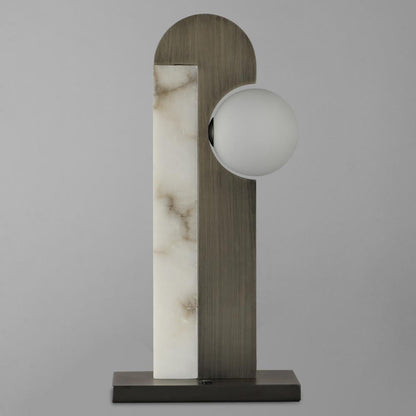Studio M NEW AGE SM2421WABBZ Lamp Traditional - Brushed Bronze. In An Approach Distinctly Found In The Works Of Nina Magon The New Age Portable Desk Lamp Presents A Familiar Yet Unusual Shape Made Up Of Combined Luxurious Elements A Curved Slab Of Brushed Metal In Gunmetal Or Bronze Cuts Away To Showcase A Somewhat Translucent Natural Stone And Uniquely Positioned White Glass Globe Shade Choose From A Combination Of Brushed Gunmetal And Straie Arya Composed Of Recycled Marble And Glass Or Brushed Bronze With Spanish Alabaster These Portable Lamps Are Operated By A 3 Step Touch Dimmer At Their Base And Led Lamps Are Included Studio M MPN: SM2421WABBZ