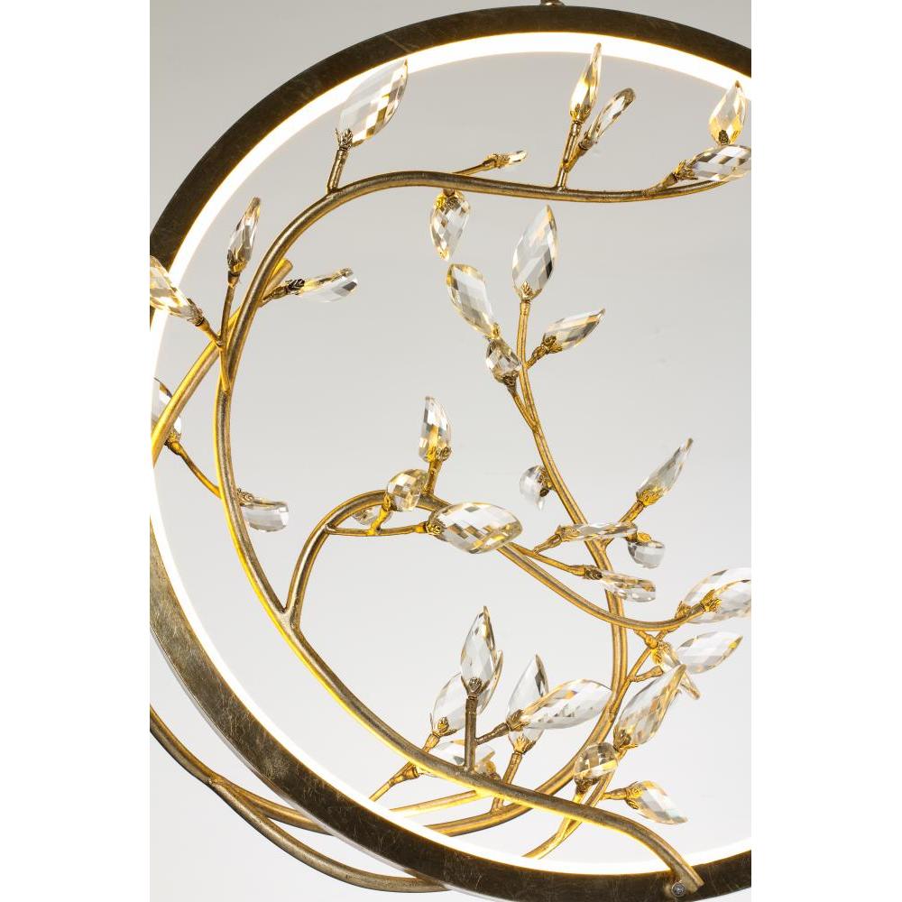 Studio M PORTAL SM23850BCGS Pendant Traditional - Combination Finishes. Enter The Portal Of Modern Luxury An Elegantly Simple Pendant Suspends A Whimsical Display Of A Hand Crafted Branch With Leaves That Support Delicate Petals Made Of Crystal This Sculpture Is Illuminated By A Vertical Ring Of Energy Efficient Led Light Finished In A Rich Golden Silver Finish With A Hand Applied Silver Leaf Base Freshened With A Golden Hue The Portal Pendant Adds Interest And Sophistication To Any Setting Installed Studio M MPN: SM23850BCGS