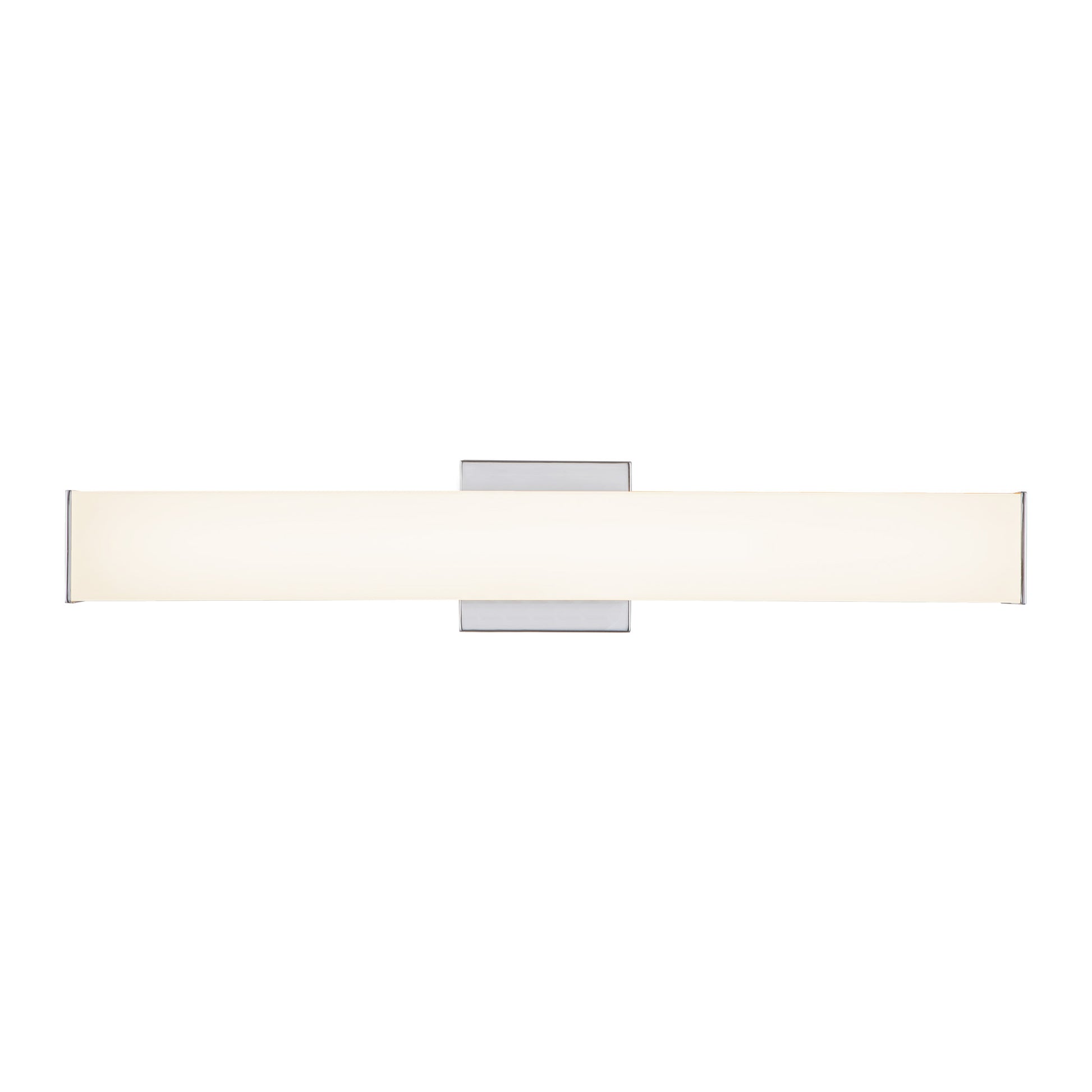 An extruded square diffuser surrounds the LED source of the geometric vanity fixture and gently spreads light. Enclosed at the ends by two thick caps the design is characterized by minimal details and clever features. During installation the lamp assembly may slide on the mounting track to allow for ideal positioning. Adding to the versatile function are the multiple fixture lengths and mounting orientations. Optional installation without backplate for smaller junction boxes.