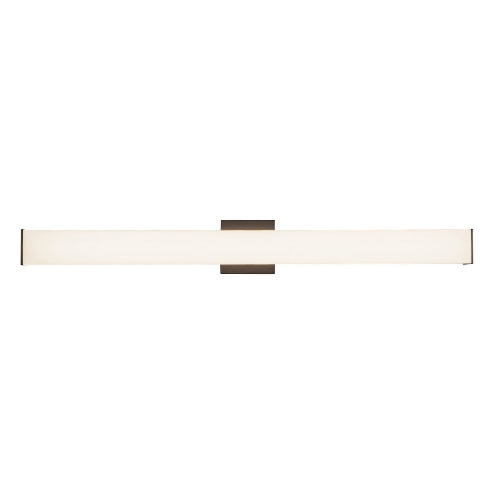 An extruded square diffuser surrounds the LED source of the geometric vanity fixture and gently spreads light. Enclosed at the ends by two thick caps the design is characterized by minimal details and clever features. During installation the lamp assembly may slide on the mounting track to allow for ideal positioning. Adding to the versatile function are the multiple fixture lengths and mounting orientations. Optional installation without backplate for smaller junction boxes.
