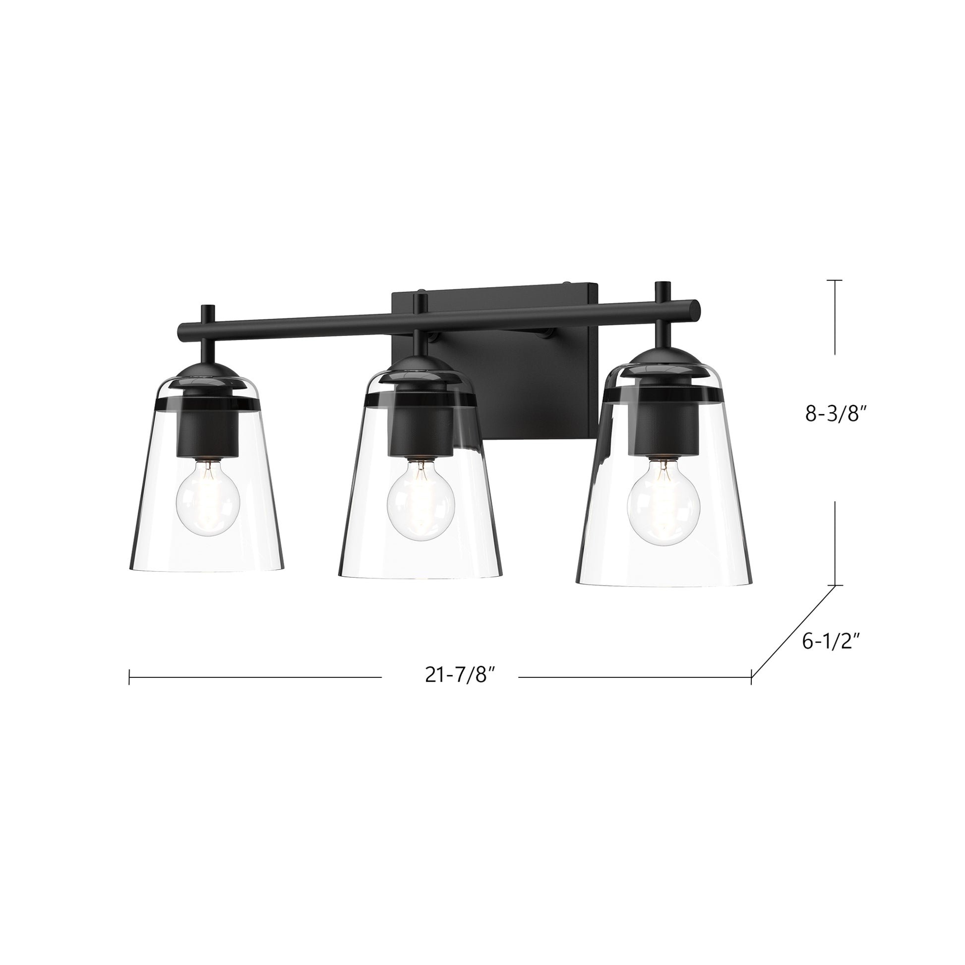 Addison is a chic and modern take on a traditional bath bar. With a sleek, geometric metal frame and curved clear glass shades, this collection is completely timeless. Place this above your vanity mirror for an extra flair of modern elegance.