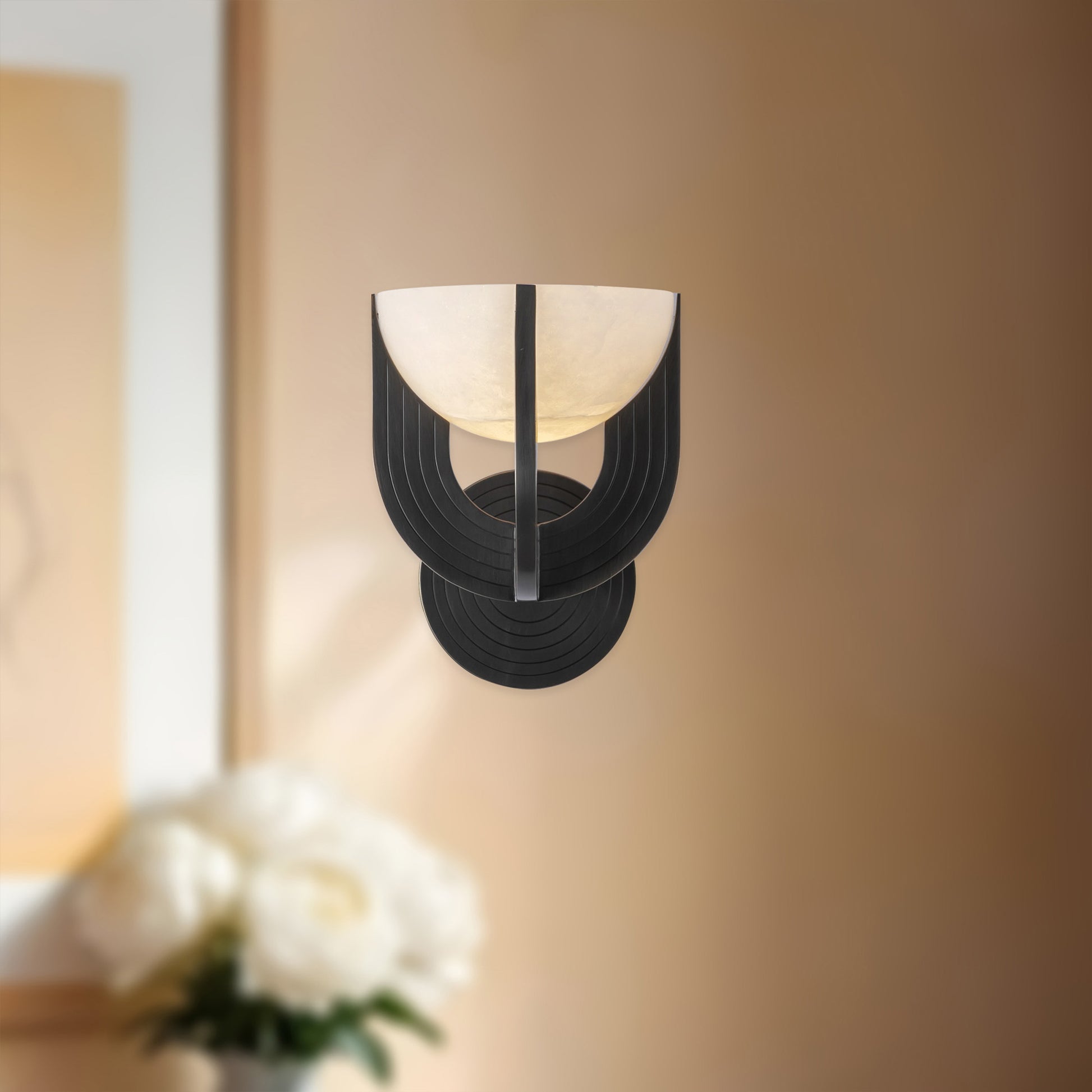 Meet the Colette collection, where classic art deco meets contemporary charm. Embrace the gentle curves of Colette’s U-shaped metal frame, enfolding luminous bowls of natural alabaster stone, casting a soft, romantic glow that transforms any space.